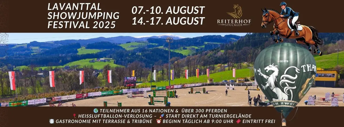 Mit über 300 Pferden und Teilnehmern aus 16 Nationen, einem Gesamtpreisgeld von 190.000 Euro und mehreren Weltranglistenspringen ist das Lavanttal Showjumping Festival 2025 nicht nur das größte Reitsportevent des Jahres in Kärnten, sondern auch ein bedeutender Treffpunkt der europäischen Springsportszene.